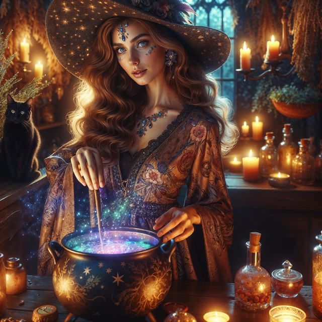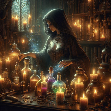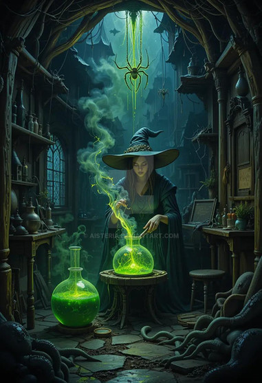 #characterdesign #magic #fantasyart #witch #mage #digitalart #fantasycharacter #forest #accessories #ai #alchemy #birds #candles #experiment #fantasy #feathers #flask #fog #hat #illustration #liquid #mysticism #potion #shelves #woman