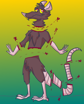 When Hugh was younger, he was afflicted with a disease-like curse that spread across his body, putting him in great pain and causing his flesh to decay and wither, almost as though it was rotting. The curse eventually subsided, but it left his body horribly scarred, with the affected areas completely devoid of fur and his skin looking a horrible colour of blackish reds and purples. He was able to survive simply because he clung to his life so dearly, and the ordeal gave him an innate fear of timidly rotting away and dying without cause. He values his own life over anything else, and he often has inner conflicts asking himself wether he is selfish for doing so. Hugh has fully accepted the inevitability of death, and is deeply afraid of pathetically dying helpless and alone, while he would gladly accept death if it meant helping those he loves, and making an affect on the world.Related content