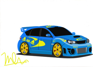 This piece was done with Illustrator and Photoshop. Illustrator was used to create the outlines and Photoshop was used to create the color - all vector though. In all, there is about 205 layers to this work.This is my second vector car. Its a Ford Fiesta, JWRC -