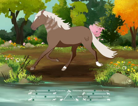[ME] Horse Inspection - Romet | BluegrassThe day had barely begun. Dawn had only just broke, and the sun's pale rays only just began to shine from behind the glistening mountain tops, casting a dense shadow on the still sleeping world below. The ground was cool, damp - and scattered with fresh morning dew. Waking up to the sound of running water wasn't something Romet was particularly accustomed to, preferring the murky sounds of the swamps and other such humid areas, he eventually roused from his sleep. It was a rough one, old memories spinning like faded films, guilt. Regret. A swirling storm of those unpleasant feelings pushed to the back of his mind, along with whatever small, and hopefully edible plant would suffice as breakfast, for now..but how much longer? Having settled for some weeks, Romet, in his sleep-doused wisdom, had decided that today would be the day he sought out other settlements and advice - especially regarding jibita husbandry. Though the horses were bred often in his original group, it was something he