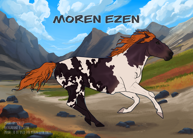 Phenotype: Black with Fryekli, Roan, Tobiano, Mystic, and Sabino [Caramel]