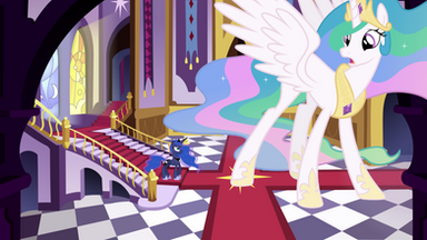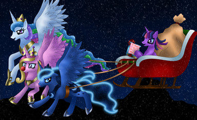 #christmashat #nighttime #ponyville #princess_luna #princess_celestia #my_little_pony_friendship_is_magic #hearthswarmingeve #fanfictioncoverart #alicornprincess #santacosplay #megagiant