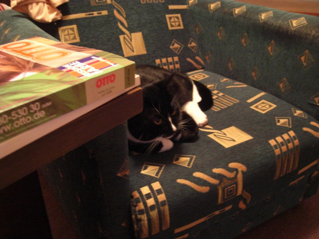 Non tutti i gatti sono in grado di compattarsi come fa Morgan….infatti non ho mai visto Nerina acciambellata così precisamente e lei stessa rimane allibita di fronte alla circolarità di Morgan che dopo aver fatto casino mangiato e scherzato chiude tutto e va a dormire… I gatti sono precisi e di classe anche quando sono divertenti e se magari ti vedono che stai sorridendo di qualcosa che fanno ti guardano con quello sguardo come per dire: “Ma di che diamine stai ridendo?” E forse la gatta guardando poi me avrà pensato: “Ma che cazzo stai fotografando?