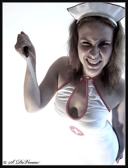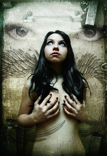 I love it. She's like a "Hell-Bent" Biker, riding the cross to salvation! I bet the bible thumpers are gonna find all sorts wrong with this! Great Pic!!!