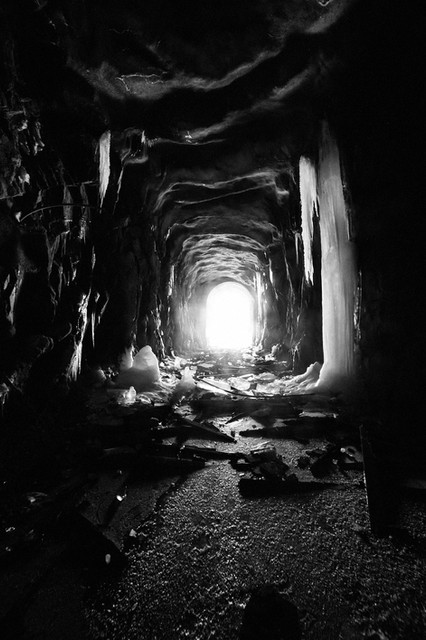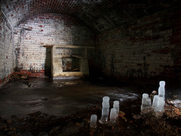 This is an HDR shot in an old underground ammunition storage room at an old WW-1 bunker. Above the icicles there is a rusting corrugated iron roof, and to the left a small window opens into a cliff that drops a few hundred feet to the ocean. I've now removed the DA watermark and added my own.Other shots of the same complex: