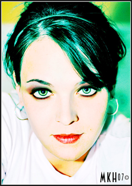 that is a bad ass picture, wonderful contrast!! ^^ I love her expression, and the way the text stands out so well...