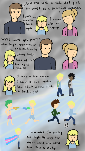 Stars cannot shine without a little bit of darkness. You just have to get back the dark. You can make it through the dark. I’ll be a flashlight if I have to dammit. I’ll be there. Even if I can’t be there physically. I will be there for you. Even if we never talk. I am trans. I am a boy. I know what it’s like to pretend everyday. It hurts.