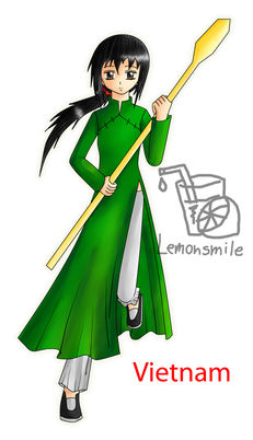 This was mostly a coloring practice, but I give you a little chibi Vietnam! She looks kind of confused, doesn't she? Her eyes I discovered are actually incredibly hard to replicate, and the work I did on them is pretty mediocre, so I'll have to work on that.Her hair was far easier than expected, though. My problem is usually that I make the colors contrast too much, I think, so that it looks more like it's a different color than shades and highlights. The same with the clothes. I just need to make the colors subtle, I think.