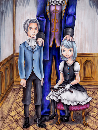 Hello there! Here is my OC Ilya in real proportion this time with his sister Evgeniya (I'll present her in another drawing but I can say that she is a cheerful 6 year old child)I really like this one even if the proportions aren't really good