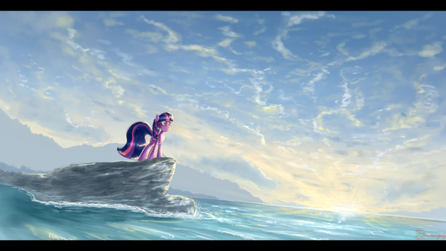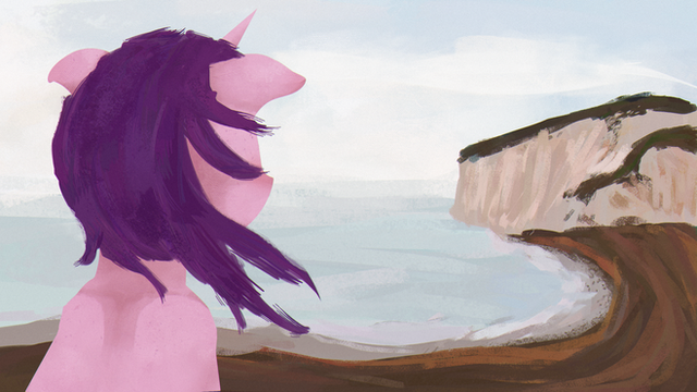 Maude Pie on a cliff by the Sea. The newest by Studio Ghibli. Joke aside, I like this. The coloring is well done, and I do like the scenery; but I especially like Maude just standing there, looking into the sea. At a glance, it makes me think of contemplation, or deep thought. While it may not have been the effect you were aiming for, like this piece either way. Great job man.