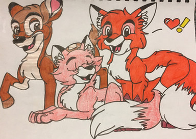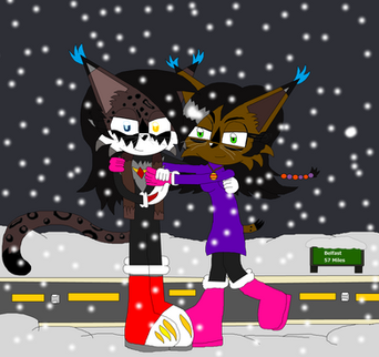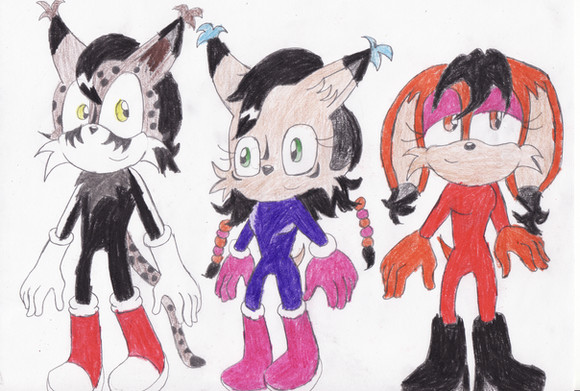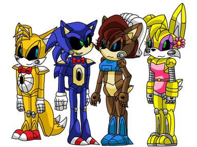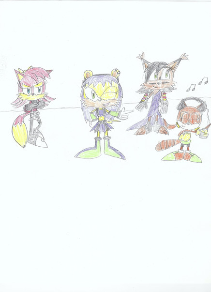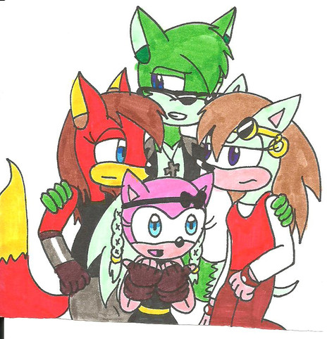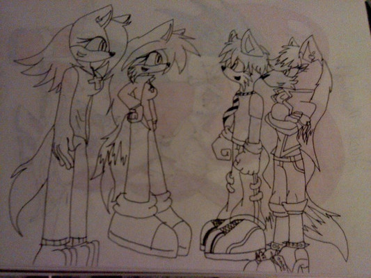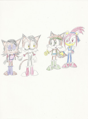 He wanted a picture of his Sonic OC Dark Cat on a double date with Nicole, Tails, and Fiona. I'm very proud of how this turned out. <3