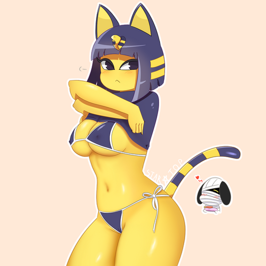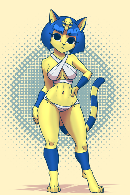 #2019 #ankha #anthro #bikini #fanart #halfbody #nintendo #suggestive #digital_art #animal_crossing #hexami #hexamithefreak
