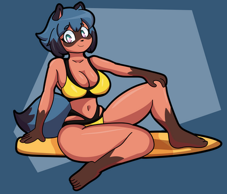 #anthro #beach #bna #fanart #female #tanuki #beach_ball #looking_at_viewer #red_bikini #hexami #michiru_kagemori