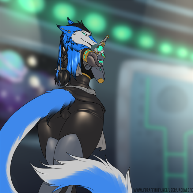 #background #dog #gun #moon #nora #hexami #hexamithefreak #anthro #bootylicious #female #leotard