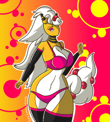 #2018 #anthro #anthrofurry #anthropomorphic #cute #digitalart #female #furry #kemono #originalcharacter #outlines #standingpose #digital_art #looking_at_viewer #unknown_species #patterned_skin #surreal_background #2018drawing #hexami #hexamithefreak #2018digitalart #undetailed_nude