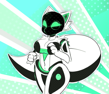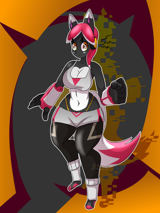 #2019 #anthro #bra #canine #female #fox #halfbody #panties #robotic #standingpose #stockings #original_art #simple_background #thicc #hexami #hexamitherfreak #furryanthro #lingerie #looking_at_viewer #2019digitalart