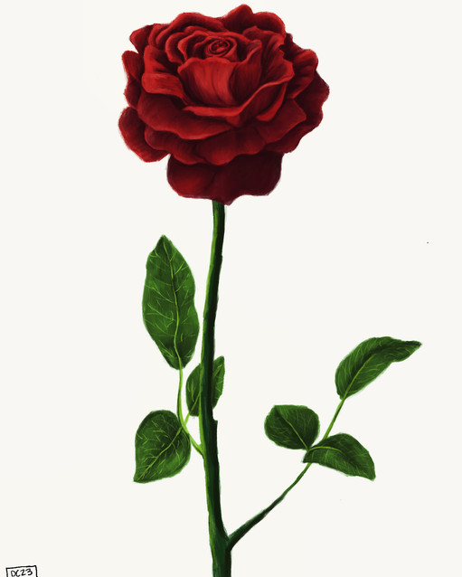 Just a digital painting of a rose from my mind's eye.Now that I compare it to an actual rose, the two look very little like each other. Oh well.