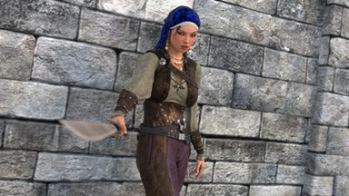 I decided to feature Darkrose in another render. The background is a modified version of Nemesis74's free Fantasy Castle.This image was rendered in Daz and edited with Photo Affinity 2.