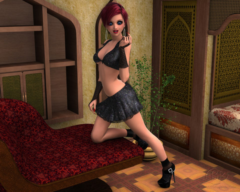 "Like this?" she asked, turning towards me with a shy, mischievous smile on her lips. Her hair cascaded down her shoulder and I had a perfect view of her shapely ass. My camera snapped the first of many shots that would be taken that evening.This render was done in Daz with postwork in Affinity Photo. The main template for Leta's body was the Madeline shape and her head was Ragna, I used over 70 additional morphs to get to this result. The environment is Rouge by Digital Creations.