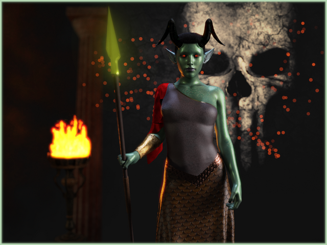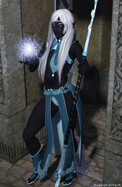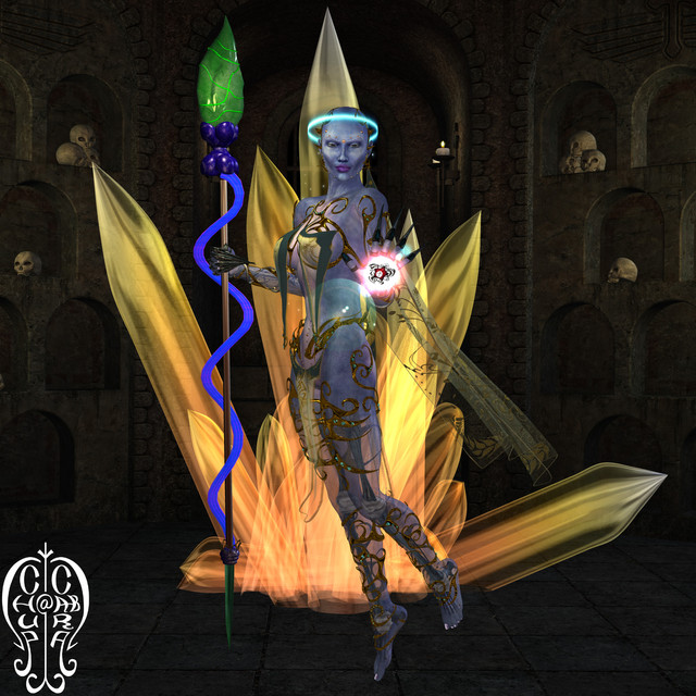This is Sentri, the lawful version of Kareotto. For Kareotto's story and more renders, check the links below.Base character used was Signe, Layla hair, and Ancient Warrior dress and drape. The morningstar is from X-fighter -- both it and the drape have Magic! shaders applied to geoshells. The background is Mage Tower Iray. All of the shaders, the indoor iray, and emissives made this render over an hour, but I think she was worth it!