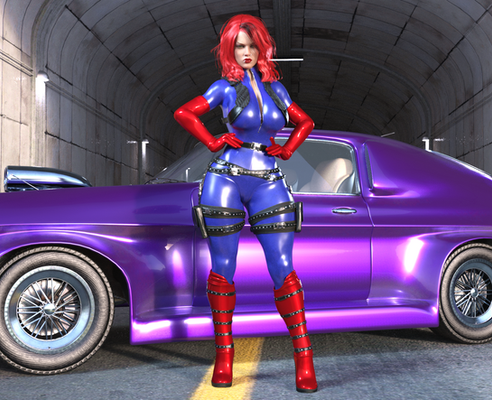 When Marvel's mutant craze in comics started in the mid 80s, my friends loved characters like Wolverine, Phoenix, or Sabertooth. My favorite was Titania, an obscure supervillain who had super-strength and toughness as powers. I don't know why she appealed to me, maybe all the purpleThis image was rendered in Daz studio and edited with Photo Affinity 2. The base character shape was Brunhilde, but the skin and shape were both modified. The background is one of Nemises74s. Also of note is the Ornate Couch freebie which Mooncraft3D made a while ago - great asset. I did reshade it for this render.