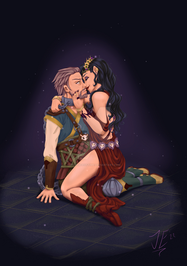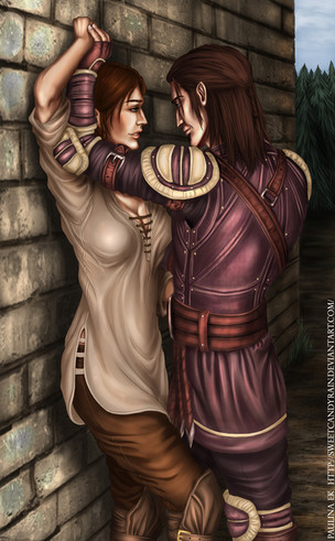 Commission for *OuyangDan of Custom!Carver Hawke and her Cousland Warden. It's based on a scene from their RP/fanfic. Poor Carver is looking worse for wear!The wall pattern is from here . Check out his gallery, he has some really good stock textures!