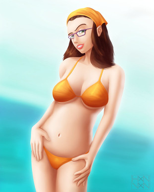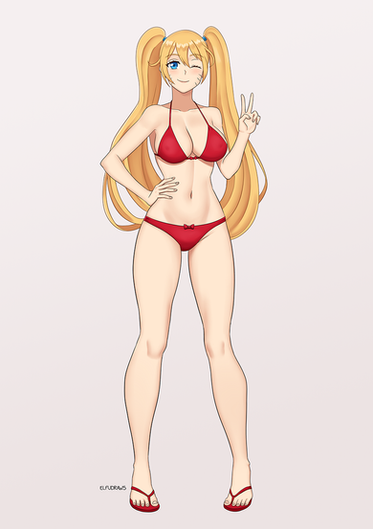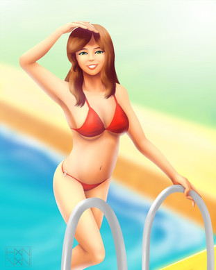 Full illustration for the commissions poster model. This version shows Full-Body, Soft shading, Bikini, and Detailed background.