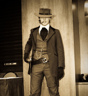 I like how simple the outfit is. Lots of details are good once in a while, but it's not often I see nicely done and simple steampunked outfits. I also like how this photo looks like it could be a part of a wanted poster.