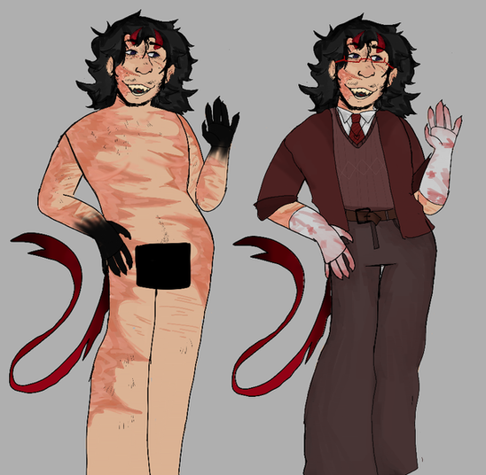 I needed a ref for his piercings, tattoos, and scars so here I made it!!Related content