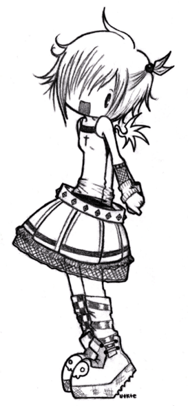 goth is good. I want her outfit. or.. well the sleeves of her top and her boots.. >_>.. seeing as how boys shouldn't wear skirts.... <_<... I don't wear skirts.. I swear. o_o!