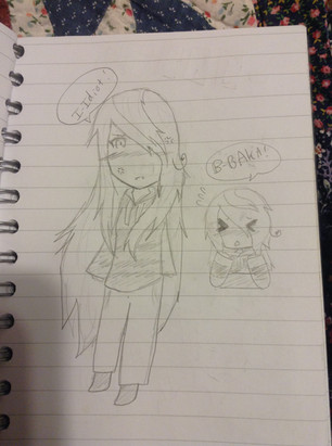 I got a bit bored and just drew me, and a tiny and for some reason lol, but they tiny and adorable.I don't know what Omni actually looks like, so I did my best lol x'D but enjoy!