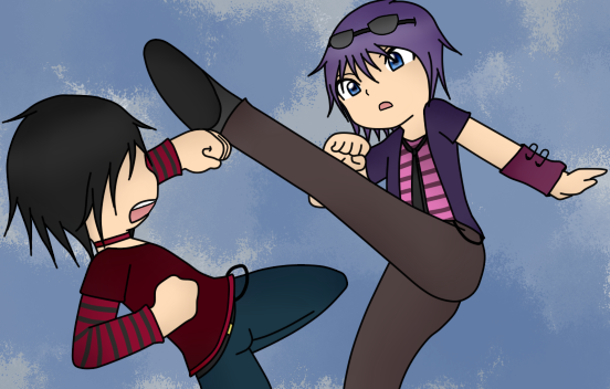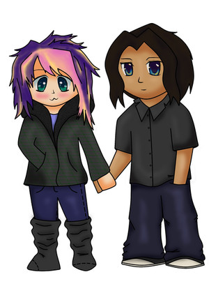 These are some new OCs of mine, Rento is on the left, Riku on the right. Rento is Riku's boyfriend. This is them after they changed their appearances slightly, compared to Joshua they don't want to change their eye and hair color. The only thing Ren did was add purple streaks to his hair. Rento is anti-social and shy while Riku is energetic and happy-go-lucky, they're basically opposites. But they love each others anyways.~~~