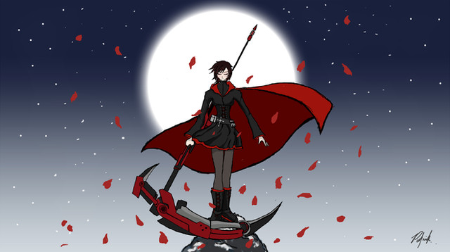 I recently bought volumes 1 through 4 on DVD and watched them again. It was so much better the second time around. I love this show. And not just for the story it's telling within Remnant, but the production stuff, too. I always get really inspired by people who make their mark on the world and their industry without a formal education (Monty Oum, the creator, never finished high school). I mean, I graduated high school, but that's besides the point.Ruby Rose by Monty Oum. RWBY belongs to RoosterTeeth. Any copyright infringement is not intended.