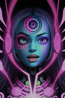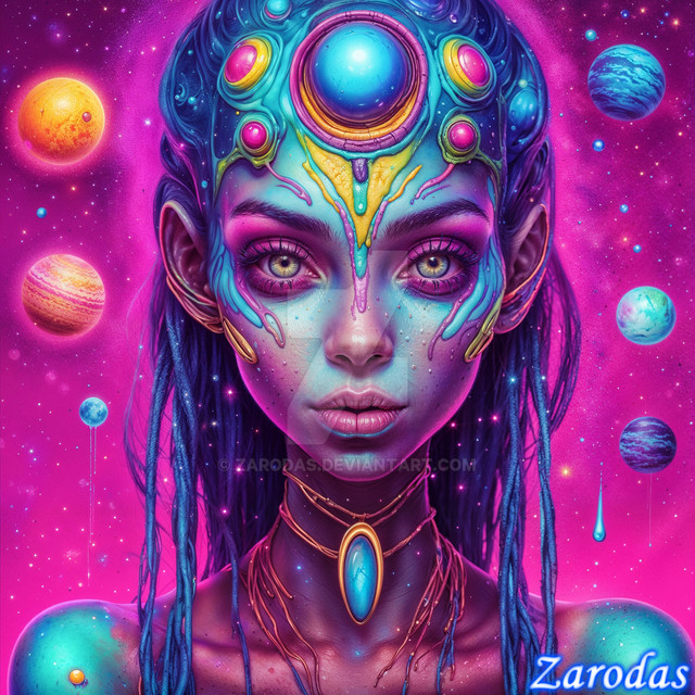 #alien #beautiful #neon #digitalpainting #femme #fey #flowinghair #glitter #nighttime #otherworldly #portrait #vibrantcolors #vividcolors #aiartwork #aiartcommunity #midjourneyart