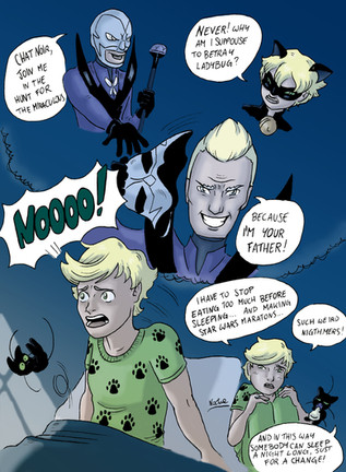 Not continuing this particular comic, but I do have alternate ideas for the Chat Noir / Hawkmoth reveal for other comic strips/pictures.
