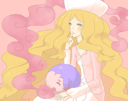 Nurse Joy with the design from pokemon b/w. She sleeps for me (I can't sleep very much so I'm always tired D