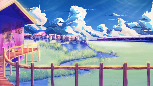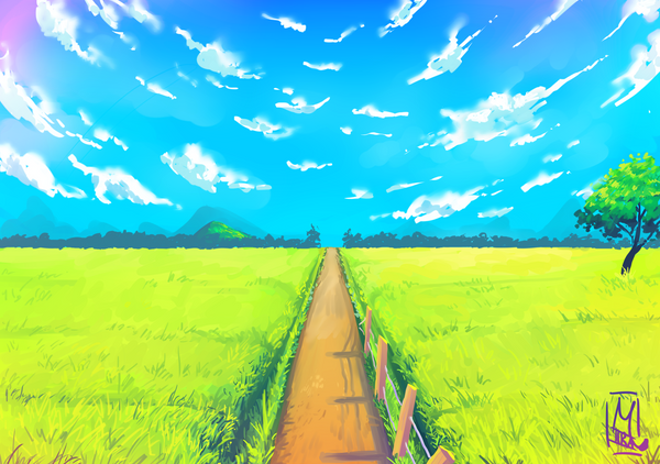 #anime #background #bright #clouds #coloful #environment #foliage #grass #landscape #painting #sky #tree #animebackground #digitalpainting #landscapescenery #foliagebrush #foliagegreen #foliageleaves