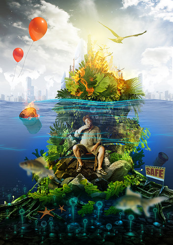 Very thought provoking... it seems to convey anger, pain and bleeding all at once... just makes me want to keep looking!! One odd technical thing, it looks like the cloud in the upper left portion loses fidelity as if it's been blown up in size. However if the edges were meant to be slightly blurred disregard that comment. It seems that the edge wants to match the crisper middle-right cloud edge in the picture. Anyhow, outstanding concept, I love it!