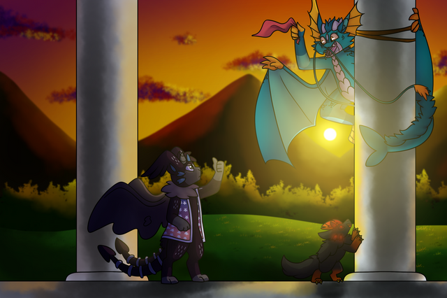 The wings were also a bit of a challenge, I tried to make them really have feathers that stood out, and round off the edges like real bird feathers... this was were almost 4 hours went whoops. I did everything on one layer (one layer of the character, one for the background) except those pesky wings, which I had to group the layers of feathers on different layers to shade them easier. The background might be a little rushed, I did it last after working for five hours straight when it was already 8:40 at night but I just kept going to get it done while I was in the groove. I ended up blurring most of it to bring attention to the character, but I hope it still looks okay ^u^