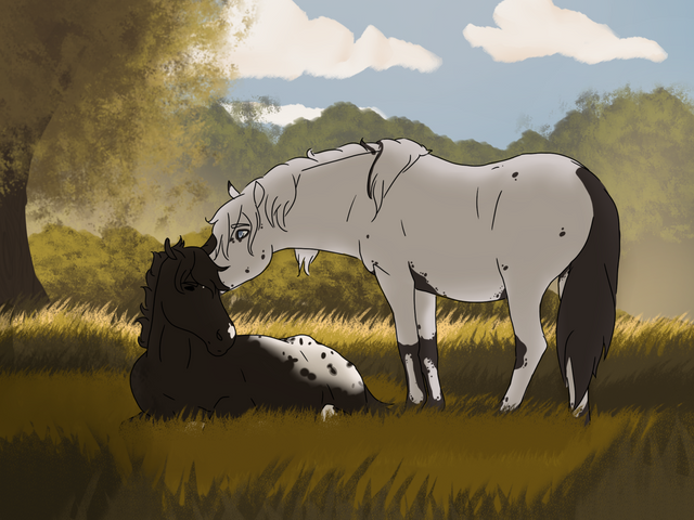 Elysium and Eirene stayed mostly to themselves, and far away from the grieving mare. No one wanted to celebrate new life when a child had been lost so recently. Unlike the others, Adonis did not intend to isolate Achlys. He reached out to her and often asked her to accompany him on walks. It was a small token of normalcy, but it was all he could offer her. The appaloosa mare seemed grateful and took him up on every single offer.