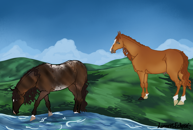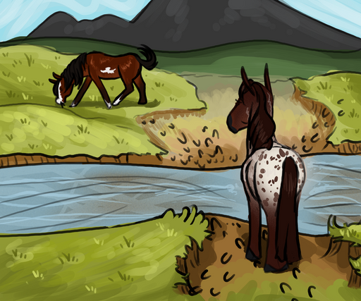 "Gypsum, will you come here, darling?" A soft voice called. A willowy, gray paint mare called, a gentle smile on her face. Gypsum grinned and splashed across the river to join her. Quiet words were exchanged before the gray mare approached, crossing the river carefully.