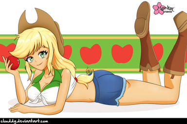 Applejack is actually my second favorite pony, and i like to ship her a lot with Rarity, my number one wuv! I like to imagine quite some saucy apple puns coming from Rares directed at Applejack while she wears that outfit. Would not suprise me, she looks positively delicious!