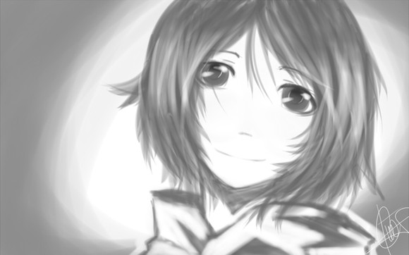 I really like how you've done her, even if this is just a doodle. Her hair especially is very pretty and I love the monotone colourscheme you have going <3
