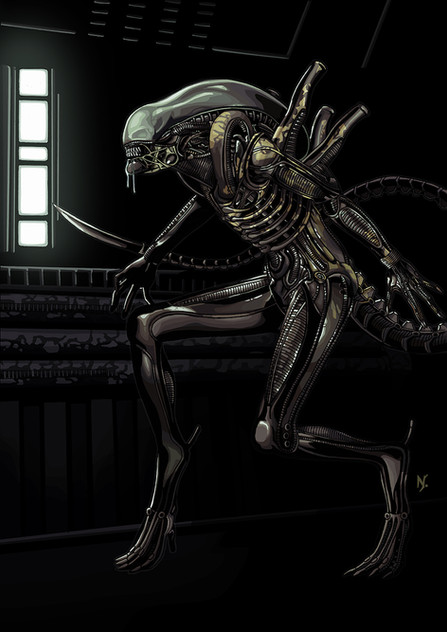 wow the original alien thats awsome!! xenomorphs rock from the predators we r called soft shell and the aliens r called hard shell or something its from one of the books lol and i guess the alien is considered a bug or a serpant very nice art piece