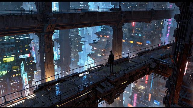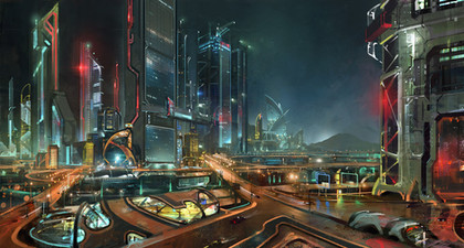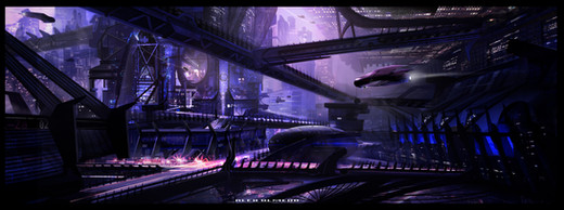 Another beautiful piece. It has a clean yet dark feel to it. Reminds me of Tron Legacy or I,Robot... perhaps EPCOT's Horizons attraction. The ominous/free feeling of a baron highway at night... Very cool.