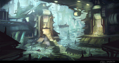 I think i rather prefer this style of speedies you do.. Like the way you manage to compose perfectly here and there an awesome scifi environnement concept (with curves and lights..) while still being such organised in the perspective approach. And oh men ive just clicked on your Hyper G One Confrontation and i've got to go faving it!!!!