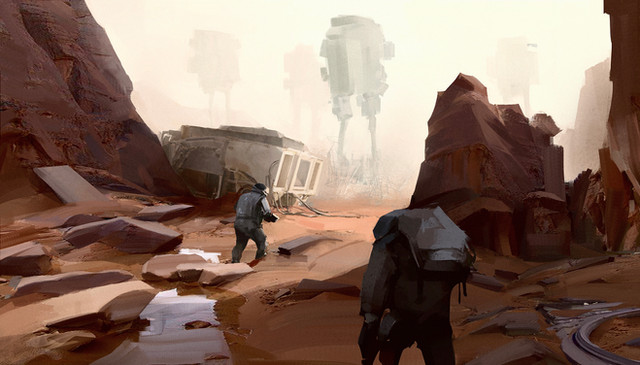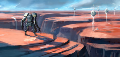 Nice! Love the soft Martian lighting on such a harsh barren world. Like the conservative use of secondary light sources as well. My eye is definitely drawn to the horizon line, creates a nice triangular flow.