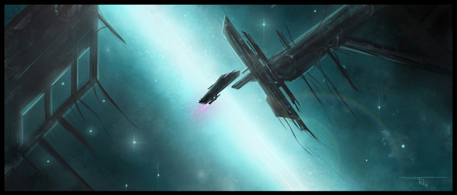 Nice. Composition and design is astounding. I like how you kept the sky simple, helps make the ship stand out. The glare is also a nice touch, doesn't steal the viewer away.