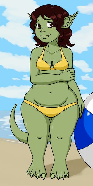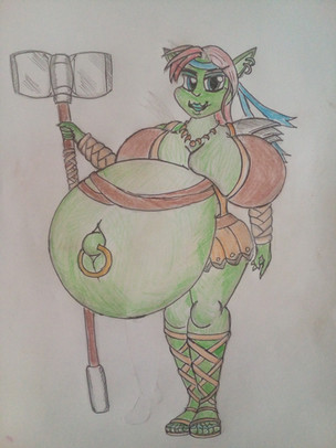 So, uh, I got no idea how to pull off 'shortstack' successfully, but I've been taking whacks at it anyway. Β Maybe it's just because being mostly torso makes it real easy to also end up as mostly belly? I just worry since it'd be super easy to mess up and turn shortstack into "going to jail" territory.I'm not entirely sure what species this lady is, beyond goblinish with a tail, but she came out cute and super huge so hey, fuck it! Β Whatever she is there's clearly going to be more of her species in a few weeks/days/minutes!