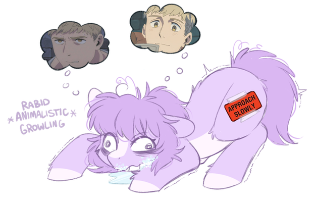 He was supposed to look slightly more fuzzy but I forgot. *ultimate shrug*Wasn't gonna post it since he just looks like a ponified version of that one long-haired kid in your high school class that wore Pierce The Veil shirts but I've been pretty inactive.
